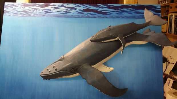 Mi reciente papel maché proyecto completado de la madre y el becerro de la ballena jorobada.