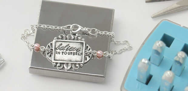 Palabras de su elección de troquelados en capas de estaño y latón estampado espacios en blanco para crear un mensaje oculto. Use el colgante hecha a mano en menos de una hora!Visita ImpressArt tutoriales para más.Paso 1: Herramientas necesariasCírcul