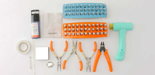 Palabras de su elección de troquelados en capas de estaño y latón estampado espacios en blanco para crear un mensaje oculto. Use el colgante hecha a mano en menos de una hora!Visita ImpressArt tutoriales para más.Paso 1: Herramientas necesariasCírcul