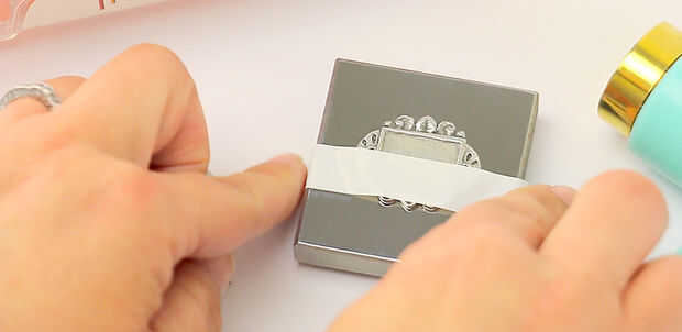 Centro sello cinta recta horizontal en el espacio en blanco del estaño.