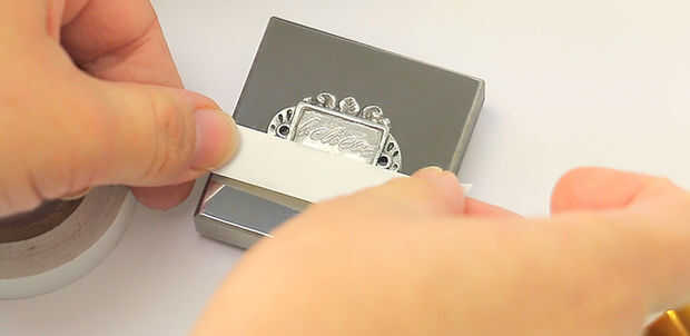 Coloque cinta recta aproximadamente 3mm debajo de la palabra de la escritura de sello.