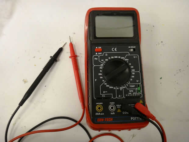 Esto fue hecha usando el dispositivo multímetro en TechShop San José. Tienen una estación de trabajo electrónica con multímetros, soldador y otras herramientas para trabajar en la electrónica.