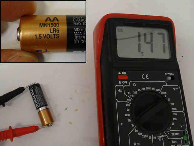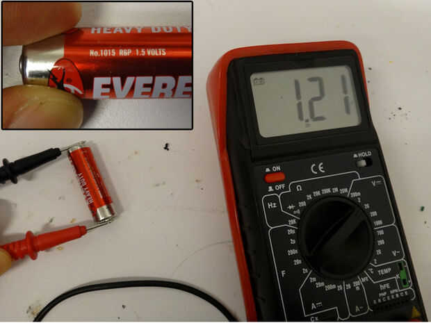 Se mostrará la tensión leída en el multimetro. Ver las fotos para ver ejemplos de resultados de la prueba de batería.