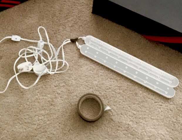 Cinta / fijar las tiras de la luz en la parte inferior de la bolsa / caja.