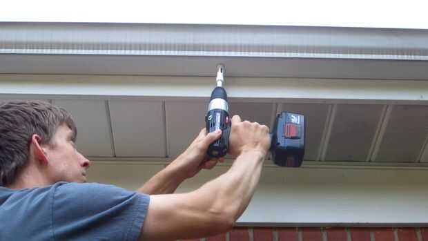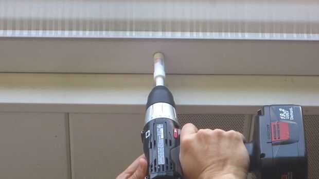 Ahora usted necesita hacer un agujero en la cuneta. Esto permite que el agua escurra hacia fuera y le da un lugar para montar la cadena. El tamaño del orificio determina la cantidad de agua que se derrama sobre las cadenas de la lluvia. Las cadenas de la lluvia no pueden manejar la cantidad de agua. Si hay demasiada agua, sólo se derrama hacia fuera en los lados y salpique sobre la nada cerca. Por lo que recomiendo mantener el agujero pequeño. Usé una sierra 11/16 para hacer el agujero.