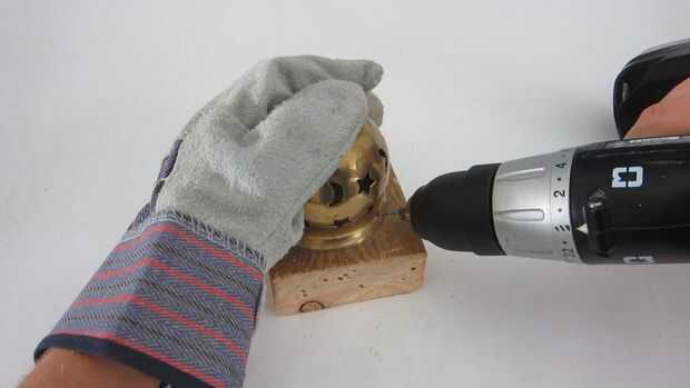 Buscar y marcar dos puntos en la parte superior de la Copa que hacen una línea pasando por el centro de la Copa. Luego perfore agujeros en estos lugares que son sólo lo suficientemente grandes como para enganchar en la parte de la cadena más pequeña. Puede ayudar a en primer lugar, perfore un pequeño agujero y luego poco a poco ampliar el agujero por nuevas con brocas más grandes.
