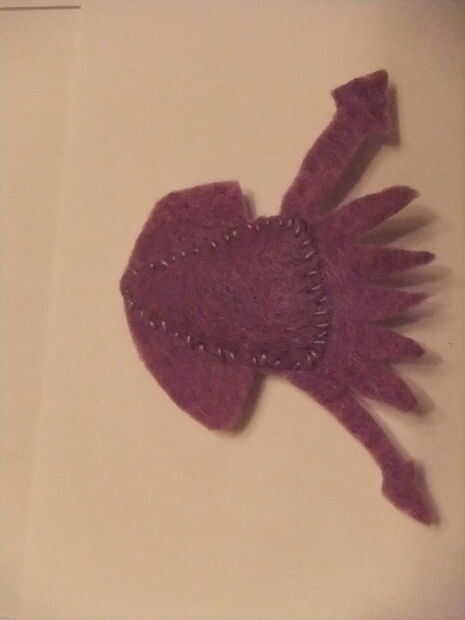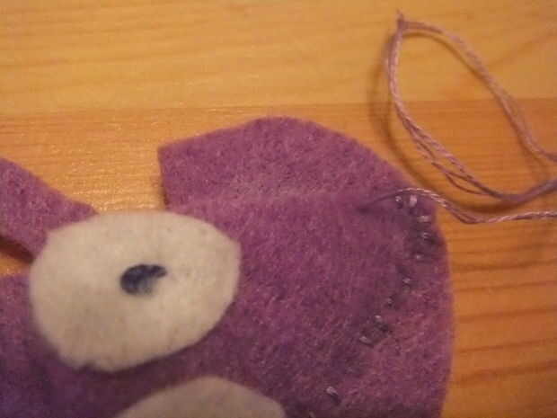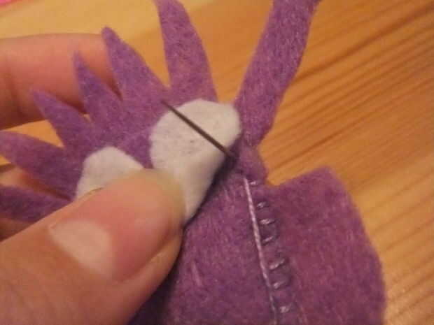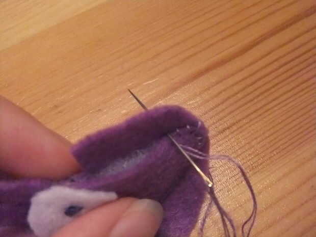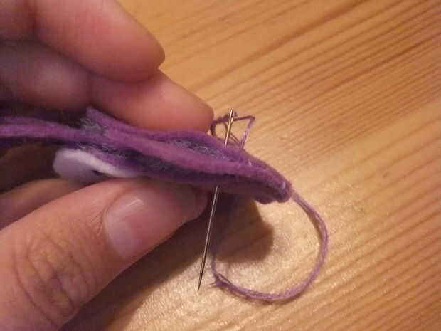 Con whipstitch, coser su sándwich de calamar! Siga el borde de los triángulos.
