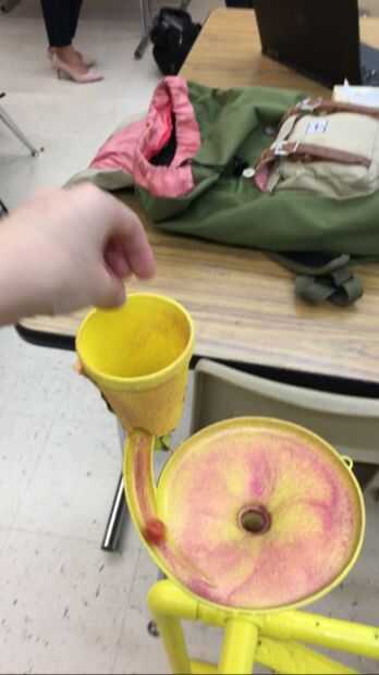 El embudo es un aspecto que permite un lugar distinto para los mármoles que se depositará. De esta manera todos se puede verter de una vez y serán separados por el embudo lo suficiente como para crear un ritmo factible para las canicas y no estorbará encima de las rampas. Hicimos nuestra en una taza verter los mármoles en que llevaron a la pista que hizo girar las canicas hasta un agujero que fue unida a la tubería del marco. Esta tubería conduce el mármol hasta que entra en contacto con la primera rampa que rueda hacia abajo.