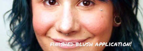 Polvo translúcido siempre debe espolvoreada ligeramente sobre el rostro antes de aplicar el blush para mantener incluso a color. Colores siempre deben aplicarse en varias capas finas para evitar la sobresaturación. Recuerde, usted siempre puede agregar más, pero es difícil de llevar! Rubores líquidos y manchas se aplica mejor con los dedos luego mezclados con una esponja limpia cosmética. Utilice el lado liso (no final) de un cepillo de la mejilla redondeado para blush ya sea en crema o en polvo — en un movimiento circular para los movimientos frotando ligeramente crema y suave para el polvo. Puede Agregar un ligero beso de blush en los templos y la barbilla para aclarar la cara y a reunir la mirada.