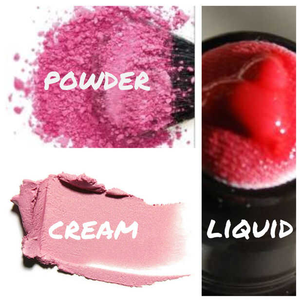 Existen tres formulaciones diferentes de blush: crema, líquido y polvo. La crema proporciona un acabado juvenil, Rocio y es una gran opción para la piel seca o madura. Los líquidos tienen cobertura pura, natural con un efecto de coloración y son los mejores para los que usan una base de polvo o crema en polvo. El polvo es más fácil de aplicar y de larga duración.