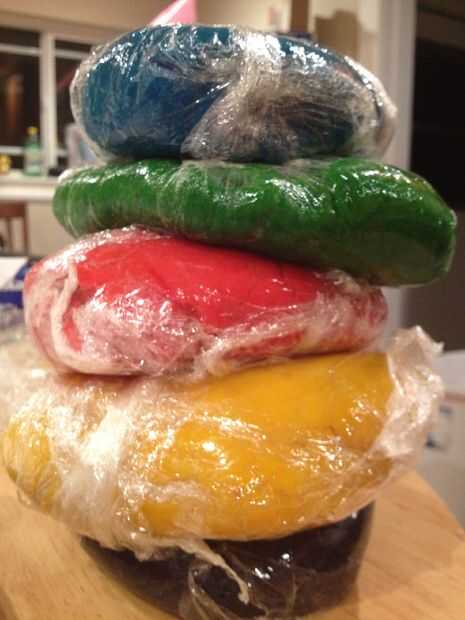 Hacer tu masa de galletas y color según sea necesario - usted puede elegir cómo desea que sus cuernos para ver.  Para consejos y técnicas sobre esto, visita mi Instructable caca de unicornio.  Allí, usted encontrará la receta que utilicé, el método de almacenamiento y para colorear.  :)  Este instructable comenzará una vez haya conseguido toda su masa de color!