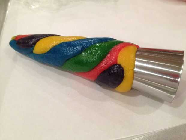 Una vez que tienes todo en allí y usted podrá ver algunas lagunas - no hay problema. Smoosh sólo ligeramente la masa para galletas a donde necesita estar. Básicamente algunos masa voluminosa y presiona en la dirección que desee para llenar los vacíos. Hacer la misma técnica cuando se trata de la parte inferior de la bocina, o la apertura. Desea tener un fin plana como sea posible, así que usted puede casquillo más adelante.