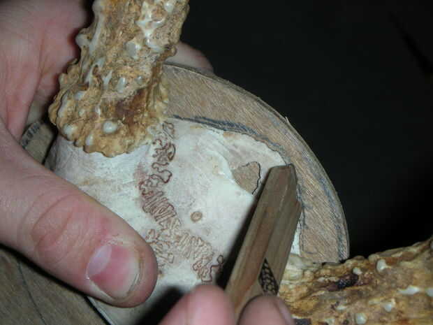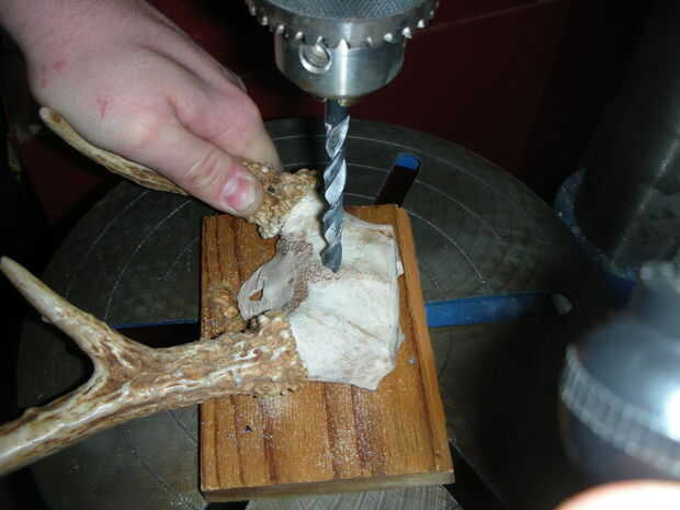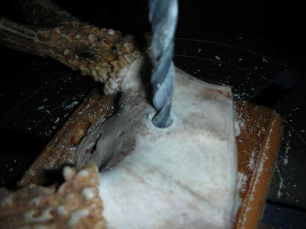 Perfore un agujero en el centro de sus cornamentas lo suficientemente grandes para su perno quepa.