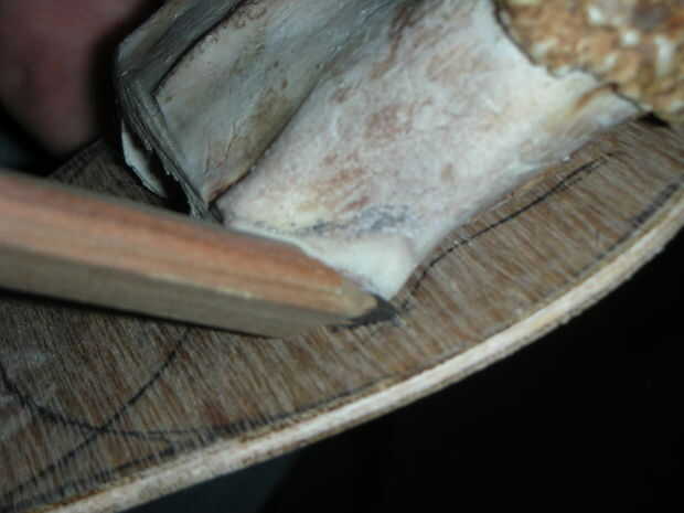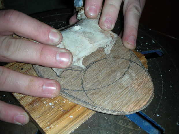 También Perfore un agujero a través de la Junta de luan que está alineado con el agujero en los cuernos.