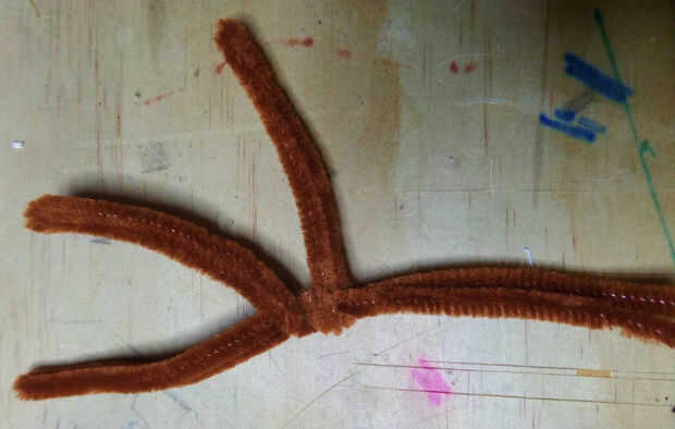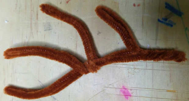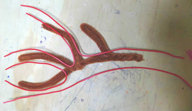 Cuerno es construido con tallos de 2 1/2. Hay un tallo principal que se va en la tapa de ventilación agujero, otro vástago completo que serpentea alrededor del tallo principal para crear dos ramas (no sé cómo se llama en términos de asta de ciervo) y otra mitad tallo que crea una pequeña rama.