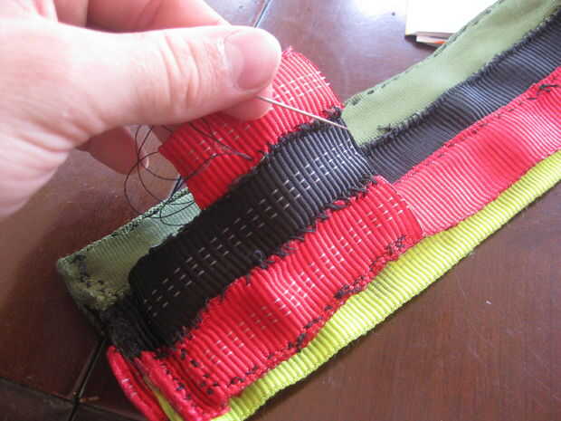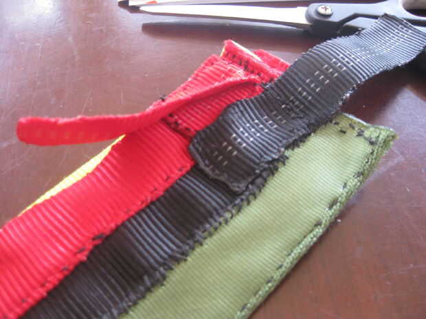 Cortada 3 filamentos más cerca de 4 pulgadas de largo. (Funcionó hacia fuera para la correa de mi pasado, por lo que es de sólo 2 pulgadas de largo en la fila inferior)