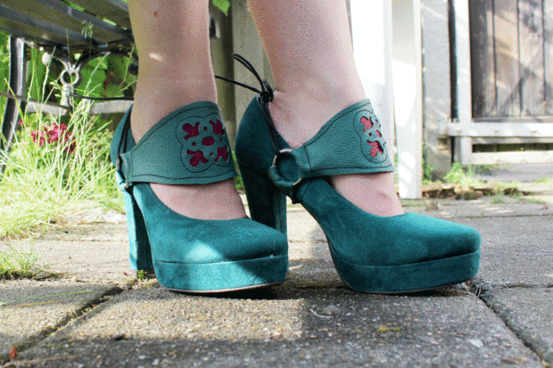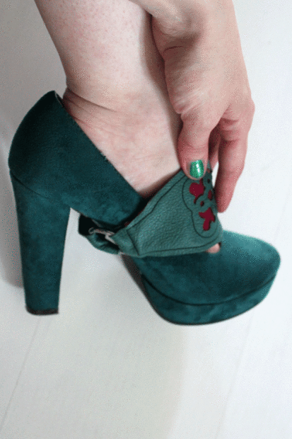 Empujar todo el zapato y poner los cordones a través de los anillos.
