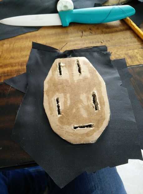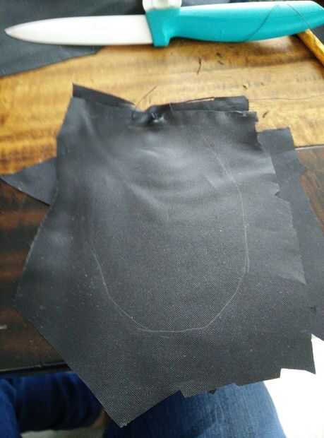 dibujar el diseño sobre la tela y coser los dos pedazos juntos, poner la cartulina y horas dentro de si estás a mitad de camino