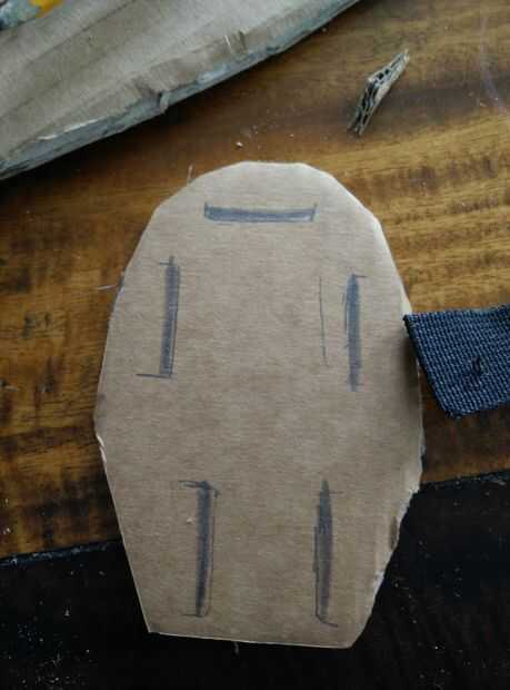 dibujar los agujeros donde las correas van a ser, asegúrese de que ellos son del tamaño correcto! mis cintas en 2cm de ancho.