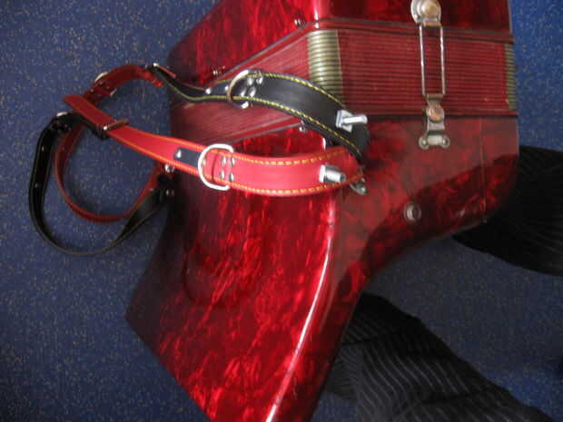 la idea general de que las correas en el acordeón trata de equilibrar el instrumento mejor y evitar caer parado