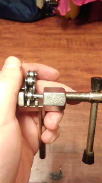 Utilizando una herramienta de la cadena de bicicleta