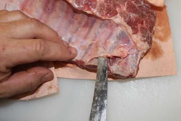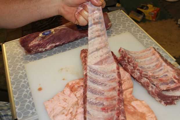 primero vas a tener que quitar la membrana de corte en la esquina inferior derecha en hasta encontrar el que entonces tire la membrana alimentan al perro. Frote las costillas con aceite de oliva o mostaza como agente que se pega. Ponga la bolsa sellada para las costillas y poner en la nevera 2 horas antes de fumar.