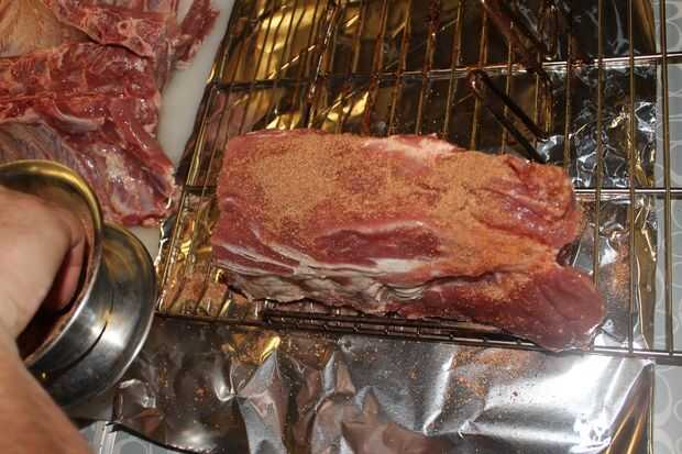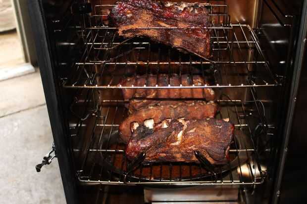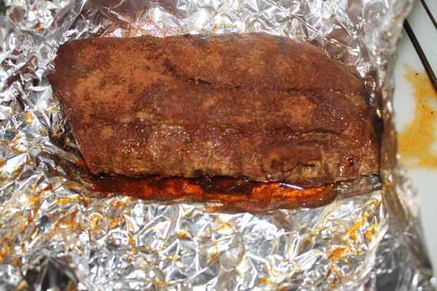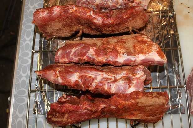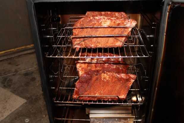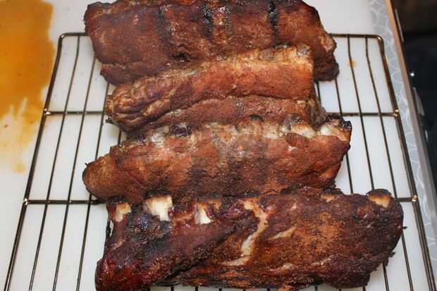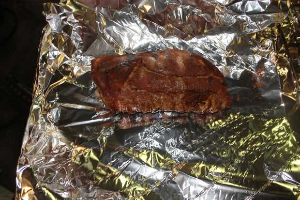 Cuando el fumador es temp poner las costillas en la parrilla y humo para 3 hrs. quitar las costillas en 3 hrs. y en lugar de estaño y aluminio en rack entonces en el fumador de 2.5 hrs. después de 2.5 horas. Vuelva a colocar en el ahumador que un frustrado para 1hrs. Generalmente se utilizar izquierda un poco más de frotar a las costillas al frustrar los y el líquido queda en el papel de la ONU se vuelca en la bandeja de agua en este punto.