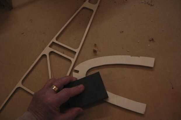 Utiliza espuma de lijado pastillas y alisado todas las superficies, luego limpiar con. Luego me reuní con el constructor de aviones para su aprobación. Ahora, sólo 31 más.