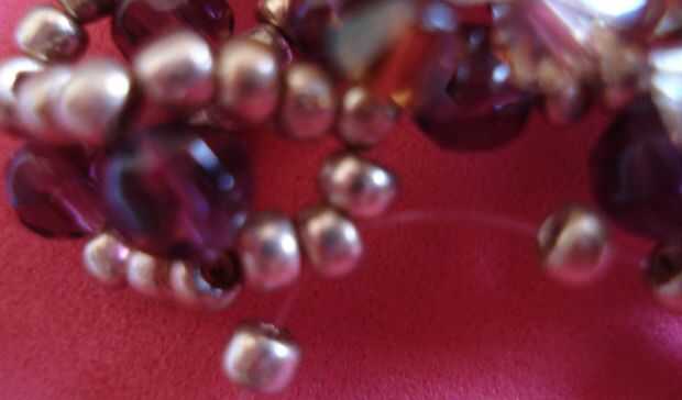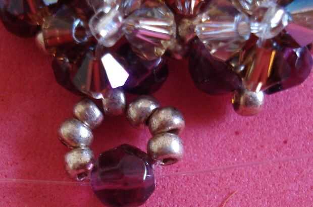 5. Repita la 4a. Hasta llegar al otro extremo. Voy a través de las bandas otra vez para reforzar la voluntad el hilo. Nudo en la base de cristal, añadir una cucharada de pegamento y termine roscando el nylon a través de ocultar extremos. Ahora se acaban y tienen un aro de cristal exótico emocionante para usar como regalo o para ti mismo, bien hecho al terminar este apasionante proyecto.
