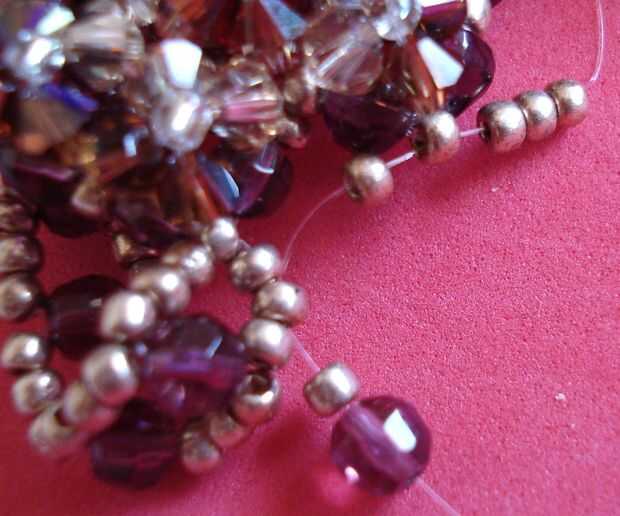 4. hice una doble fila, ir a otras semillas de bolas sobresale entre 2 cuentas checas, debe ser hacia la izquierda de la fila acaba de hacer.