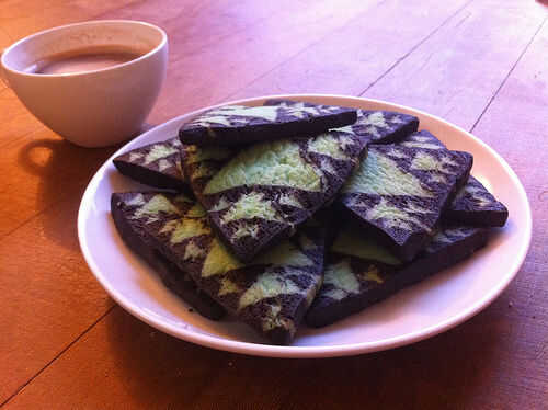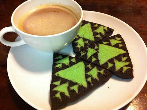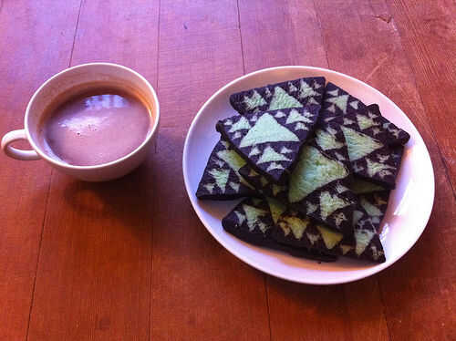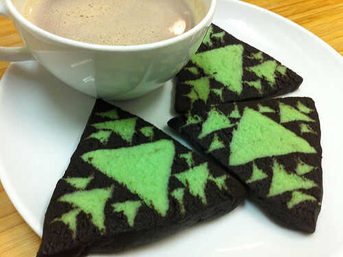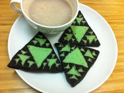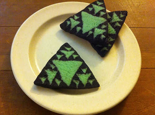 Hace unos años me inspira unas cookies de fractal en Evil Mad Scientist. Decidí hacer una versión triangular. Estaba un miembro de instructables detrás, así que no pienso tomar fotos del proceso paso a paso. Subo fotos de mis galletas a nuestro stream de flickr, aunque.