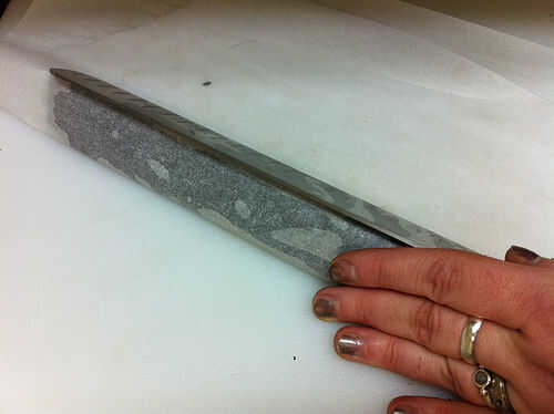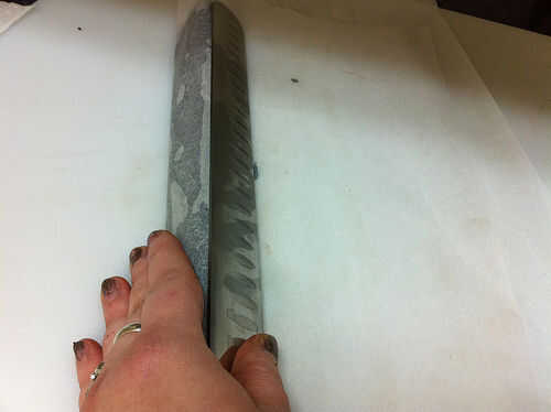 Un papel pergamino y cuchillo largo y recto ayudar a algunos.