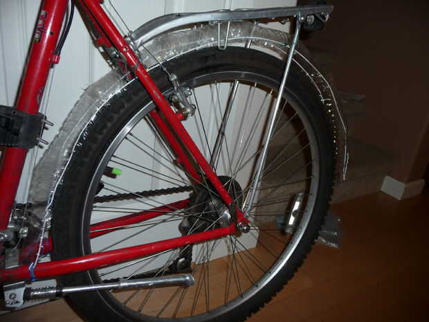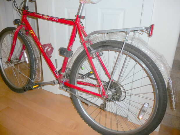 He visto tiendas venden escudos de barro para bicicletas de montaña, pero nunca he visto cualquier defensas completas para la venta, así que decidí hacer mi propio. Desde que vivo cerca de Portland, Oregon (que tiene una comunidad de moto grande y próspera, pero también un montón de tiempo lluvioso) espero que mis defensas nuevas se me animan a subir más en la lluvia.