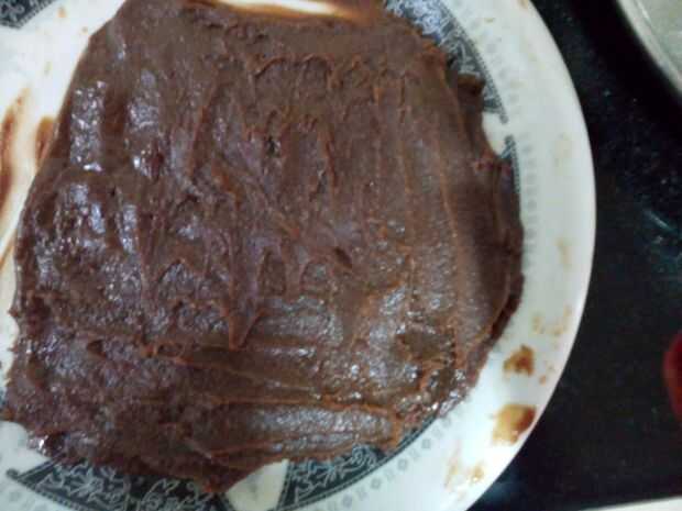 Transferir la mezcla a una placa untada de mantequilla de búfalo, nivel dorso de una cuchara de ziplock engrasado para un acabado más liso