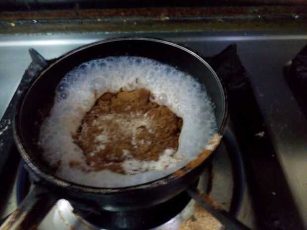 Poner una cacerola. Añadir todos los ingredientes. Revuelva hasta el líquido. Añadir por último nutella y mezclar bien.