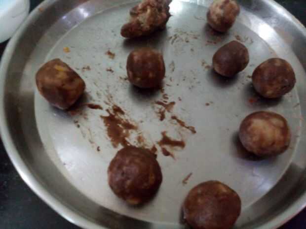 Hacer bolas iguales y en las manos y poner una tuerca. Otra vez hacer una esfera. Hacer esto a todos ellos.