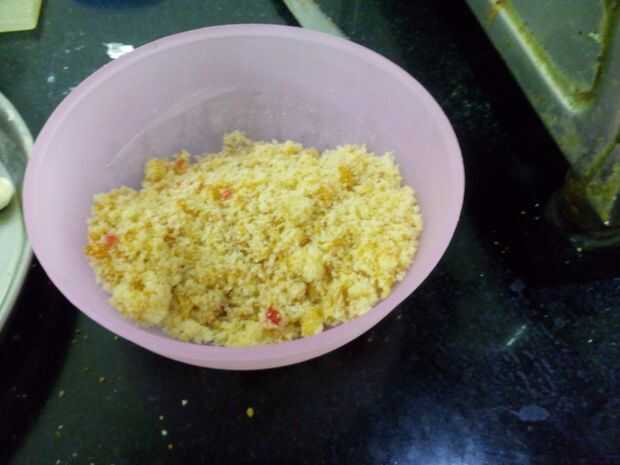 Los postres de la inmersión en la salsa de chocolate y luego el bizcocho rallado. Hacer esto otra vez a todas las piezas.