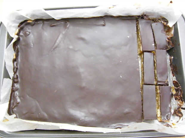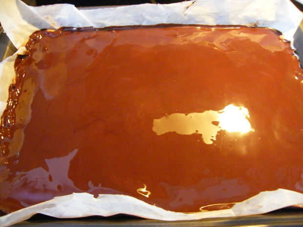 Derretir chocolate en microondas y extensión uniformemente sobre el pastel frío.