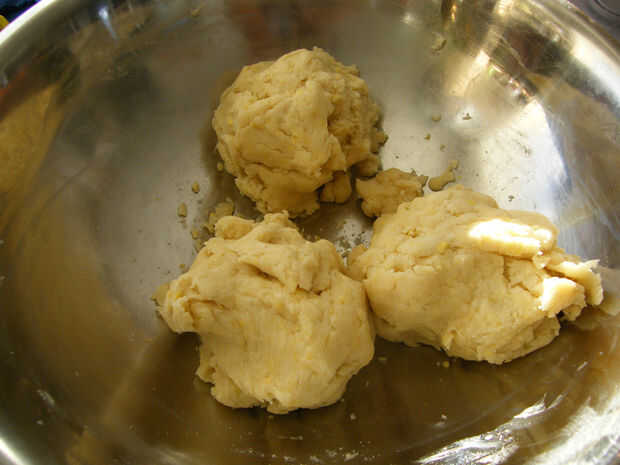 Mezclar todo, amasar y dividir en 3 porciones iguales