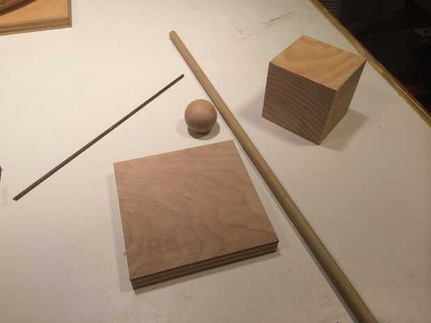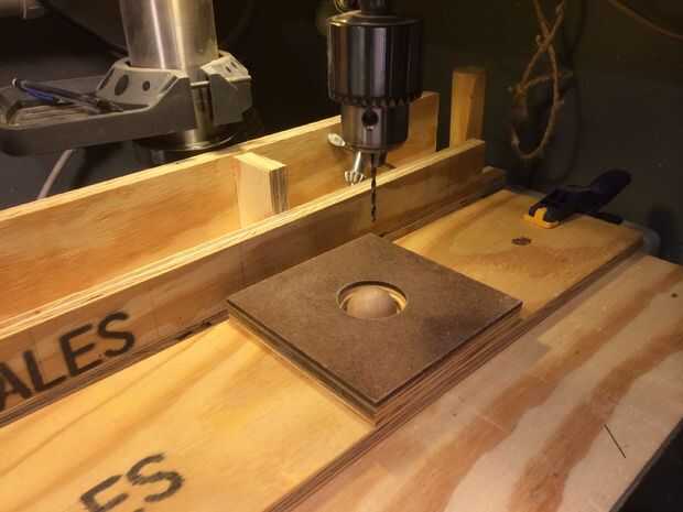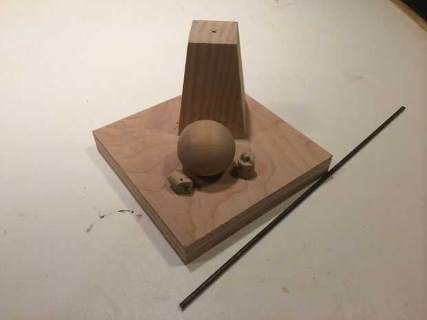 Quería que el cuerpo en esta estatuilla de afilado para implica una forma femenina, así que usé mi disminuyendo la plantilla en la Sierra de mesa. Se perforó un agujero centrado en la parte superior e inferior del cuerpo, así como un agujero en dos lados paralelos, para acoplar la barra de metal. Para perforar un agujero en la bola centrado y recta, usé mi esfera jig en el taladro de perforación. Todas las piezas se lija luego a grano 220.