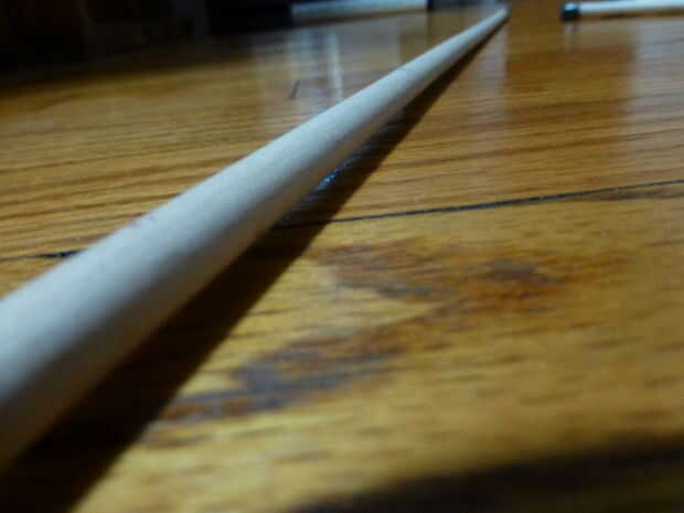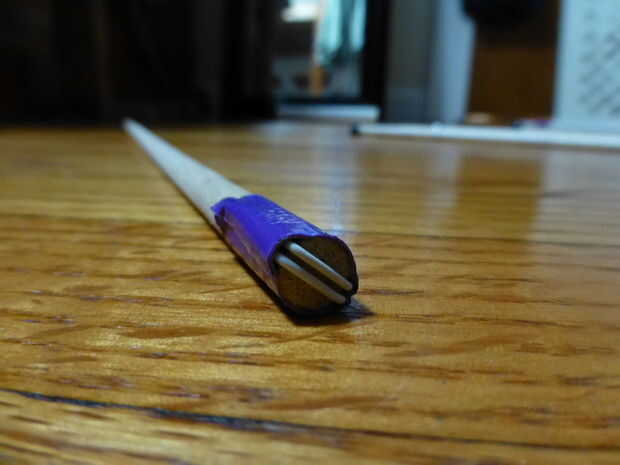 1) finas varillas de madera cortan por la mitad para el eje de la flecha. Éstos eran solamente un poco más flexible. Intentar no tener las flechas ser demasiado flexible, podría encajar.