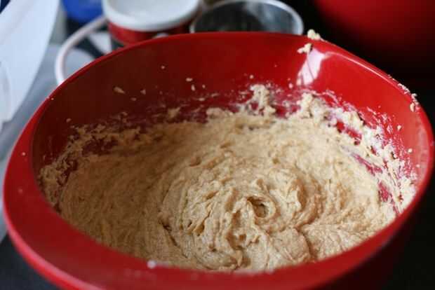 2. Batir el azúcar y la mantequilla juntos en un segundo tazón hasta que esté cremoso y alguna forma de picos.