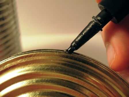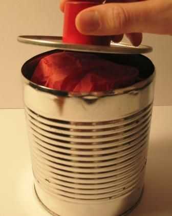 Es el momento de cerrar nuestra caja. Elige un pegamento fuerte y aplicarlo en toda la circunferencia de la tapa. Luego con un imán (es más práctico y evita cortarse) vuelva a colocar la tapa en la lata. Tal vez será necesario enderezar los bordes de la caja con pinzas para tener un acabado perfecto. Poner un peso para ayudar a que pegue y deje que se seque el pegamento el tiempo indicado en el tubo.