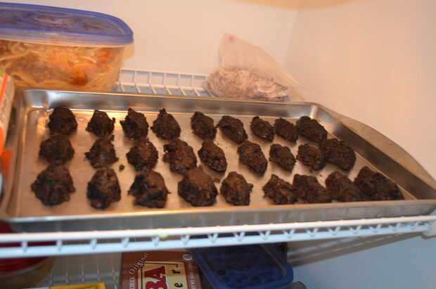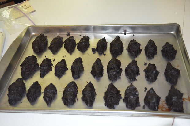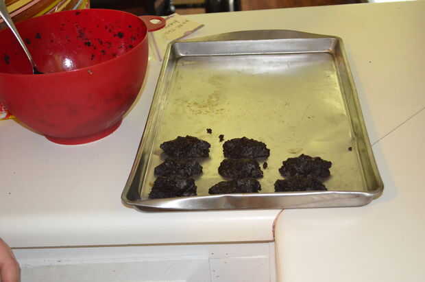 Conseguir un pan que es bastante grande pero todavía caben en el congelador (yo usé mi congelador exterior que podría utilizar una sartén grande). Agarra unas Oreo mezcla hacia fuera con el dedo le y ponerlo sobre la bandeja. Que se vea un poco como una pelota de fútbol. Repetir este proceso para toda la mezcla de Oreo. Ahora congelarlas durante 10-20 minutos.