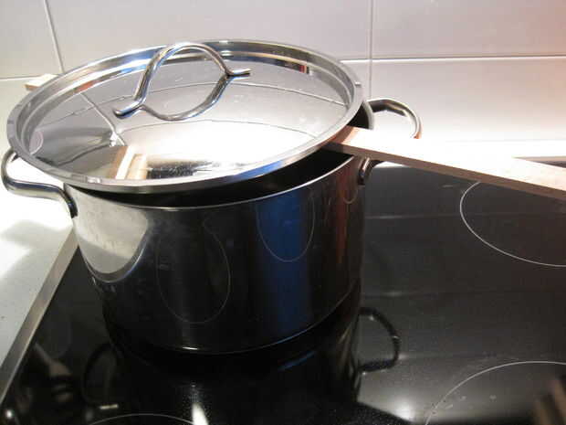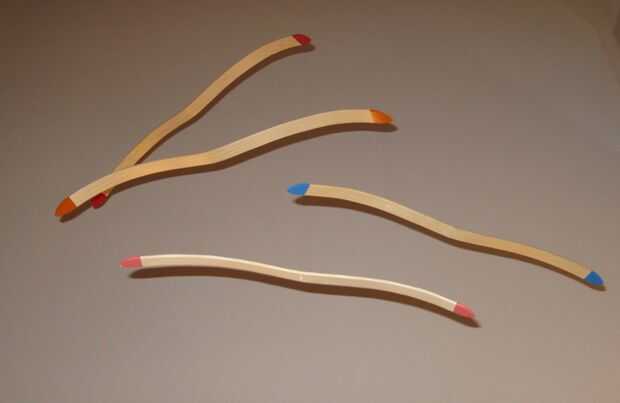 b) hervir agua en una olla grande y sumergir la madera en el vapor en los lugares que se doblará durante varios minutos en 1/2 h (dependiendo de la madera). A continuación, manualmente doble y mantener la fuerza hasta que se enfríe.