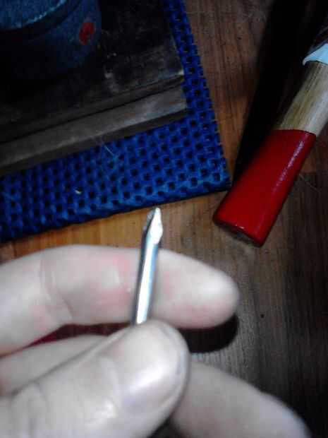 Bien ahora que el marco está acabado permite empezar a trabajar sobre el diente, para comenzar utiliza el martillo y el yunque para remodelar ese fea corte de máquina punto en algo con una mirada más forjada.