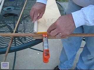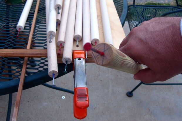 Cortar el palo de escoba (pasador) en secciones poco menos de 2 pies de largo. De arena el mango como sea necesario.