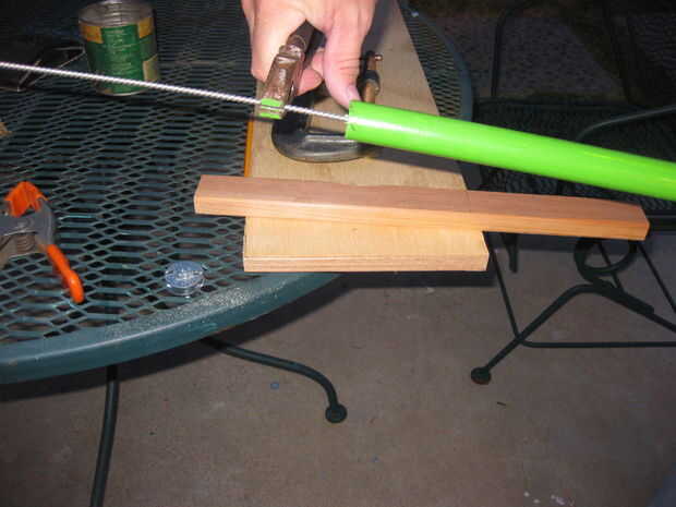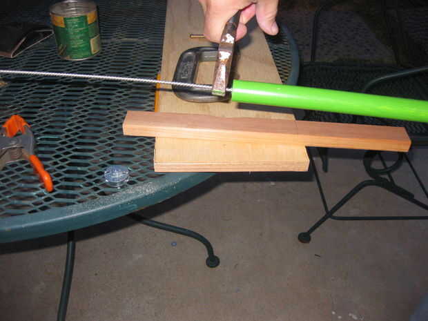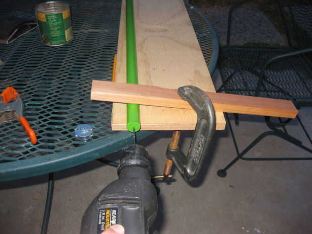 Cuidadosamente perforar hacia abajo de la línea central del mango aproximadamente 1.5".
