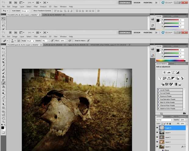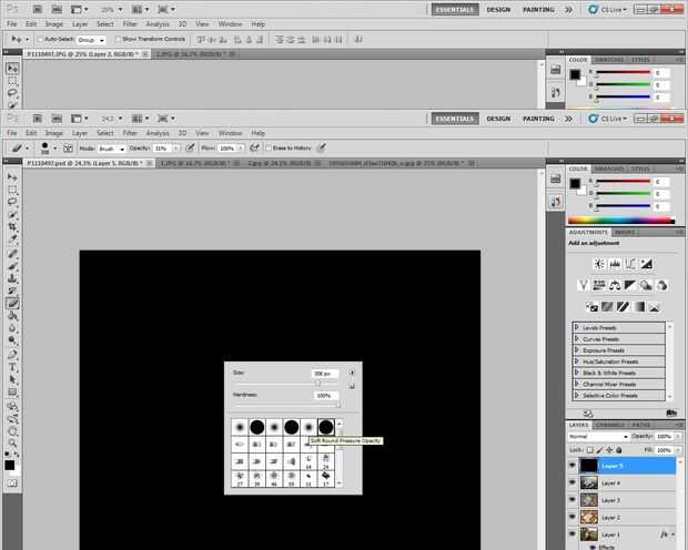 La idea es utilizar un valor de opacidad alto en medio de la fotografía, donde usted quiere ser capaz de ver los detalles de la imagen y disminuir el valor de opacidad medida con el borrador hacia los márgenes.