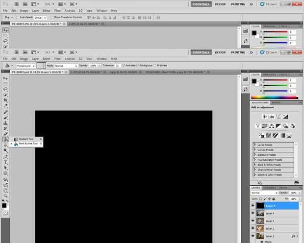 2. Utilice el cubo de pintura (G) para llenar la nueva capa de color negro